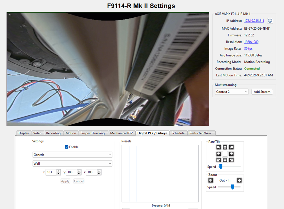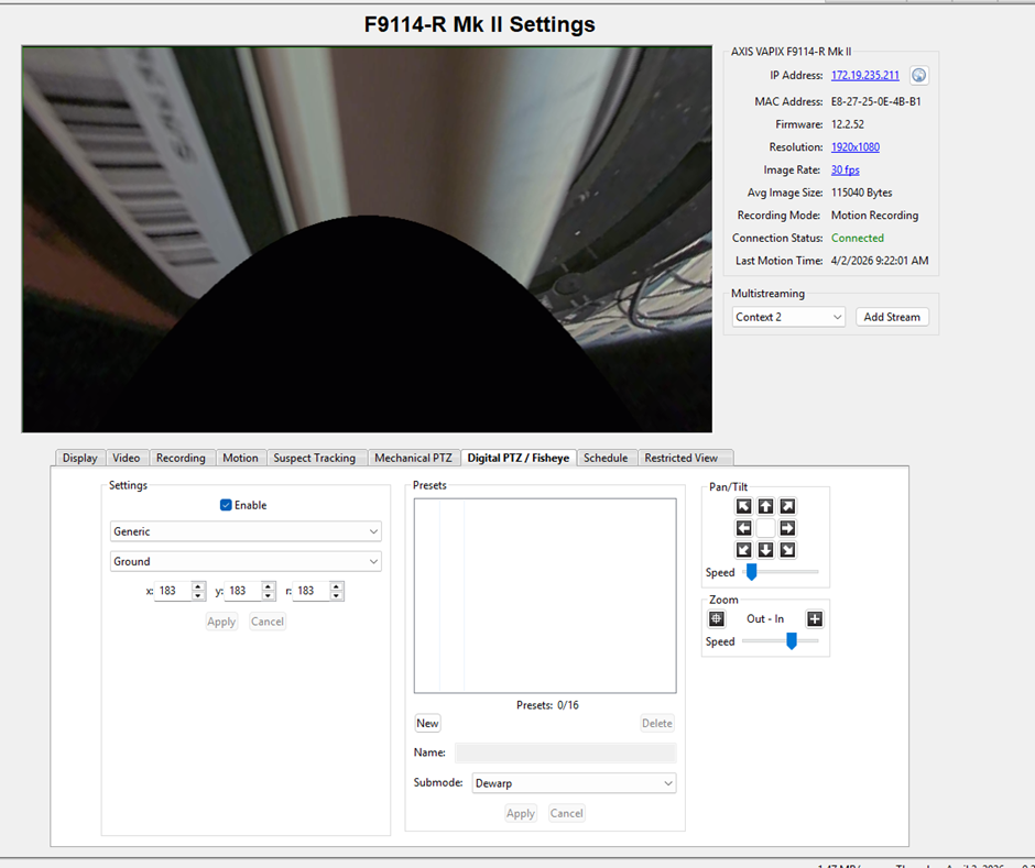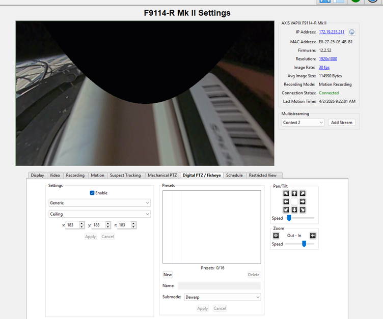 Select drop down menu for the Fisheye dewarp.