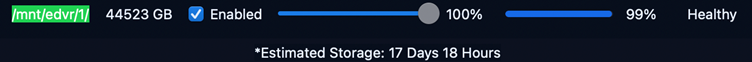 | Space-based (overwrite) | When allocated Video Space is consumed, oldest footage is overwritten. | Oldest Content age decreases as load increases; drives remain healthy and usage is near allocation. | Sudden loss of large time ranges, especially if disk usage is not near full; missing footage coincides with drive errors or manual file changes. |