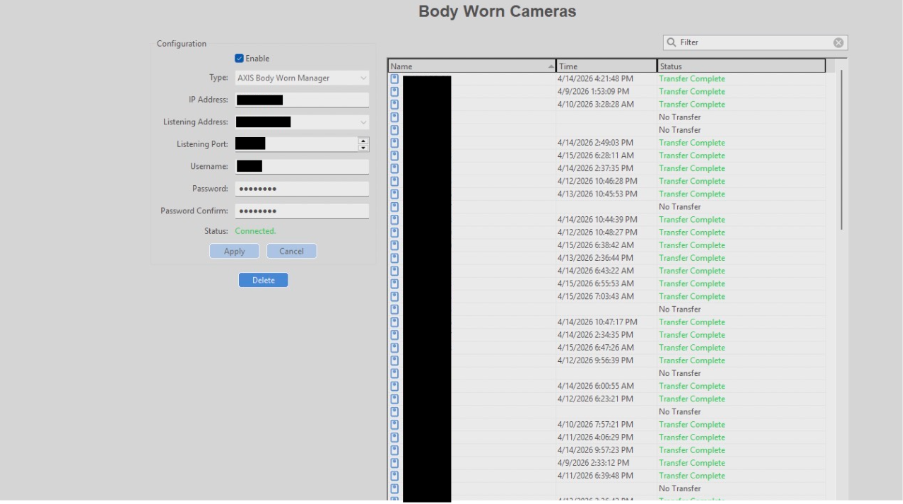 •  Open the Exacq Client and navigate to Body Worn Integration.